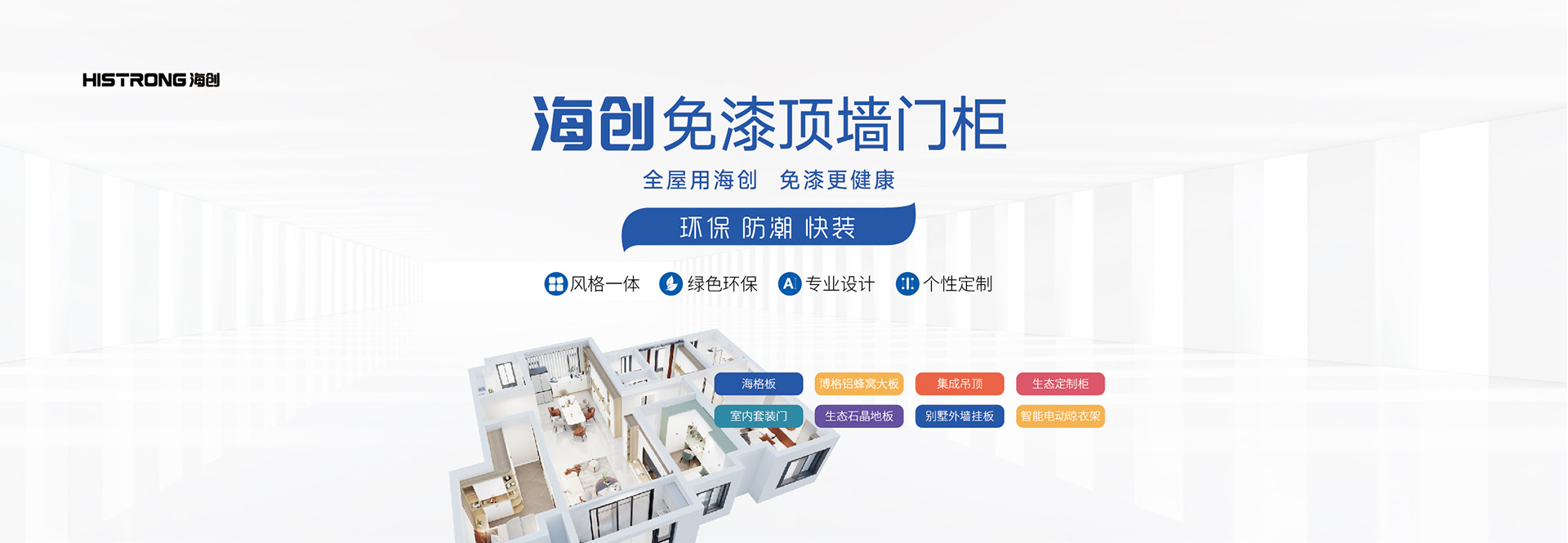 海創(chuàng),專注免漆頂墻門柜風格美學研究,開創(chuàng)了中國免漆頂墻門柜系統。以『全屋用海創(chuàng),免漆更健康』的家裝訴求、以『空間有界,生活無限』的品牌理念致力于為消費者量身定制舒適、環(huán)保、獨具品味的個性化美學空間生活。